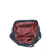 バタフライフラワープリントを施したウォッシュ加工のデニムリュックです。機能的なポケットがたくさん付いているので旅行・仕事・学校にと外出が楽しくなります♪