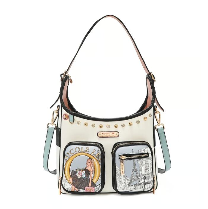 淡いカラーにニコルリーガールとビジュー装飾がお洒落。