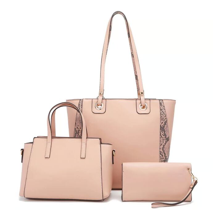 長めのハンドルで肩掛けがしやすいトートバッグ+ハンドバッグ+パスケース 3点セット。